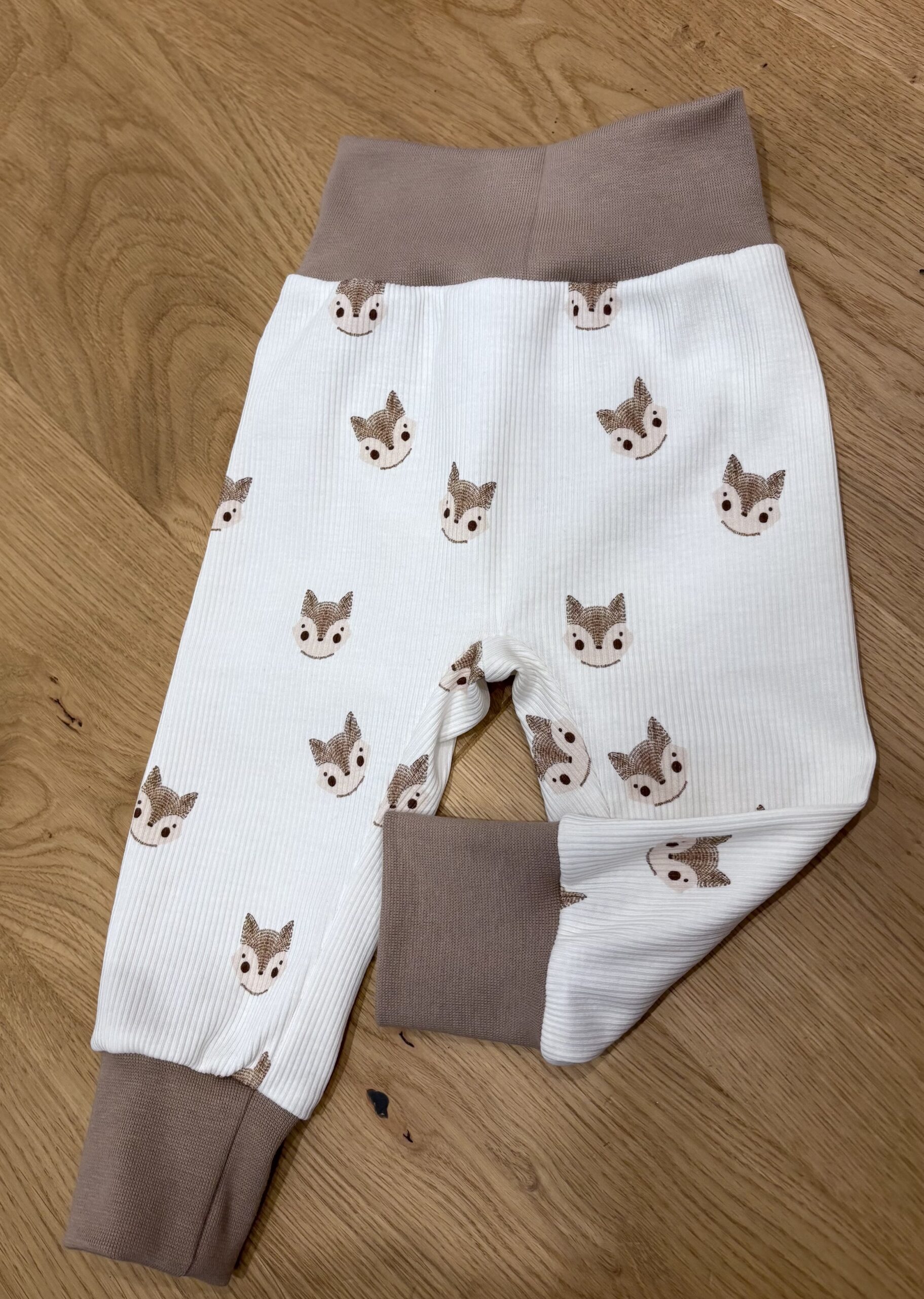 Die Pumphose Fuchs gerippt| Baby vernäht ist eine gemütliche Hose die ein paar Größen hinweg mitwächst.